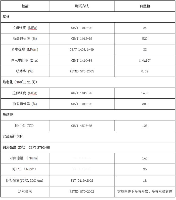 管道防腐補傷片是一種專門為鋼質管道聚乙烯防腐層補傷設計研制而成。補傷片是由輻射交聯(lián)聚烯烴基材和特種密封熱熔膠復合而成。補傷片在施工時加熱,使特種熱熔膠涂層融化,與補傷部位緊密粘接,和原管道聚乙烯外防腐層形成一體,均勻包覆在管道表面,形成連續(xù)緊密的防腐體系,可抵抗土壤應力,抗靜水壓力,抗陰極剝離,抗化學腐蝕和霉菌侵蝕等多種腐蝕形為,為鋼質管道提供長期、有效的保護。補傷片主要用于聚乙烯兩層防腐和三層防腐的管道聚乙烯外防腐層在運輸、檢驗及施工過程中造成的損傷修復,如局部區(qū)域的點傷、線劃傷小于100mm見方的小面積損傷。補傷棒是純熱熔膠棒,配合補傷片使用,或補傷較小碰傷點。